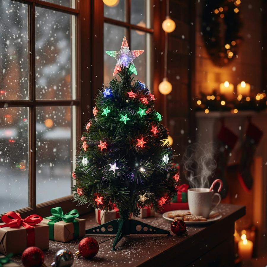 Com 60 cm de altura, é perfeita para mesas, balcões, escritórios e pequenos ambientes, levando o brilho do Natal para qualquer espaço. A estrela iluminada no topo completa o visual, garantindo charme e elegância à decoração.