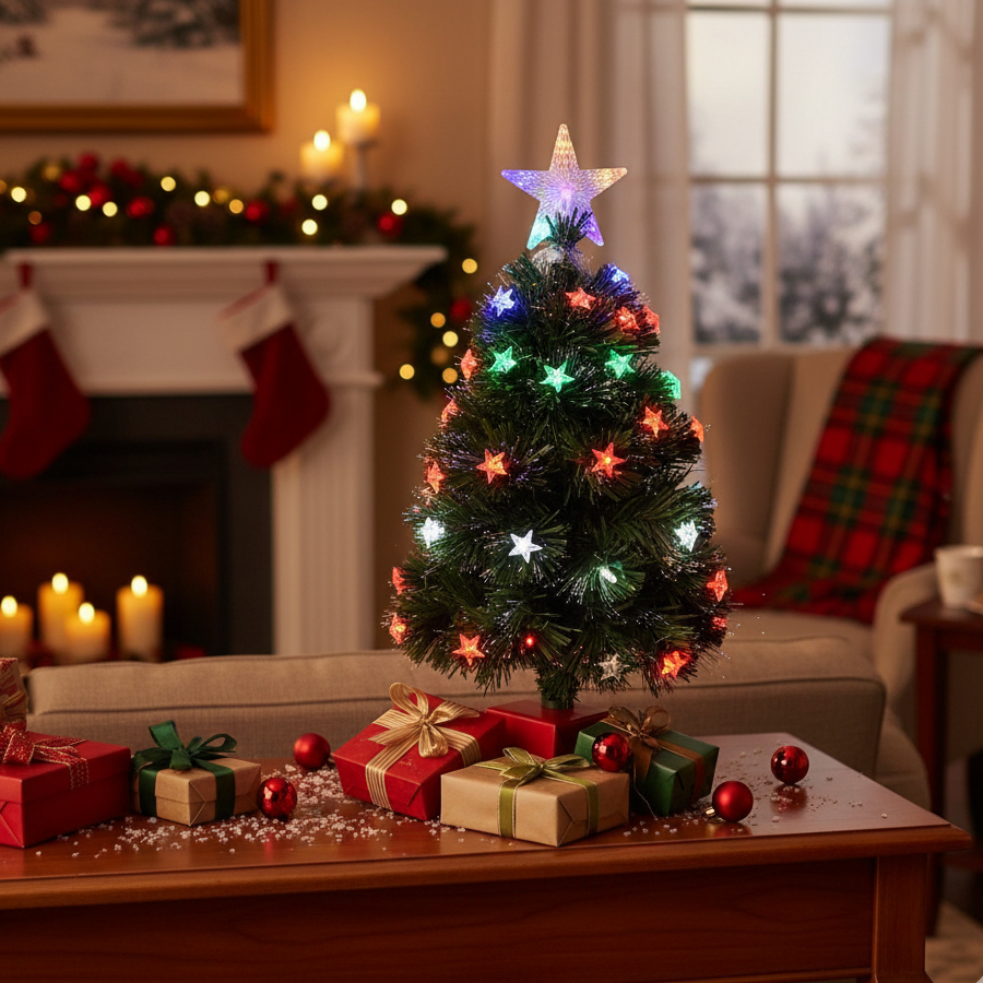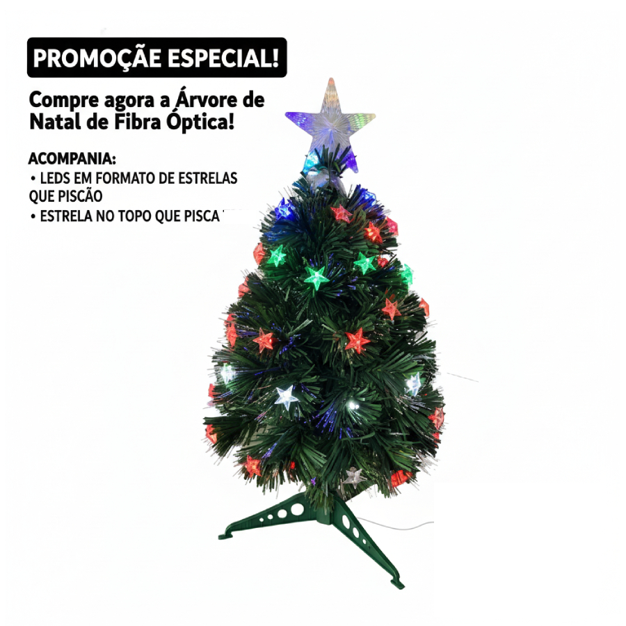 A Árvore de Natal Fibra Ótica 0,60 m com Ponta Estrela – 8F A060 é a opção ideal para quem deseja praticidade e um toque moderno na decoração natalina. Compacta e fácil de montar, ela possui iluminação em fibra ótica que muda de cor, criando um efeito visual encantador e sofisticado.