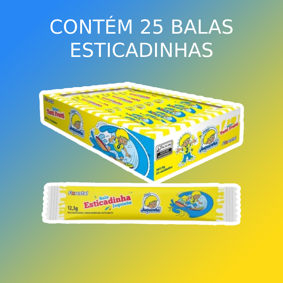 – Bala Juquinha Stick Tutti Frutti – Display com 25 unidades