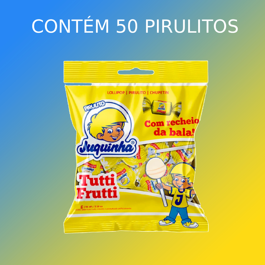 O clássico sabor tutti frutti da Juquinha em diferentes versões para agradar a todos os gostos! Este kit reúne bala, pirulito e bala stick, garantindo variedade e diversão em qualquer ocasião. Ideal para festas, lembrancinhas, comércio ou para ter sempre em casa, proporcionando aquele gostinho nostálgico que conquista gerações.