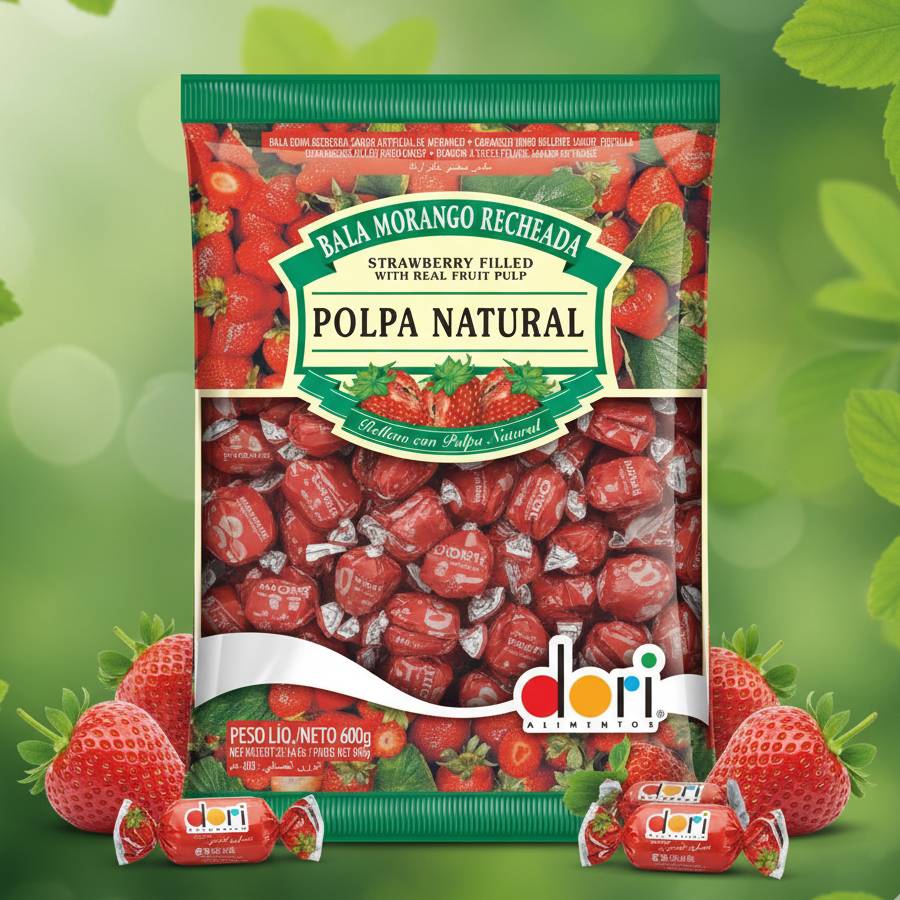 A Bala Morango Recheada Dori oferece uma explosão de sabor doce e frutado com o recheio cremoso de morango em cada pedaço. Ideal para quem ama o sabor clássico do morango, ela é perfeita para festas, lanches ou para saborear a qualquer hora do dia. O pacote de 600g garante que você tenha bastante para compartilhar ou aproveitar sozinho!
