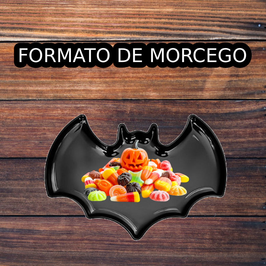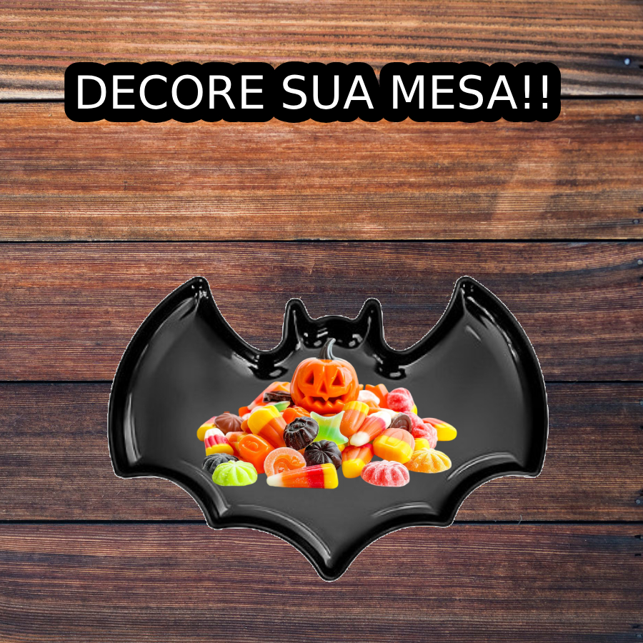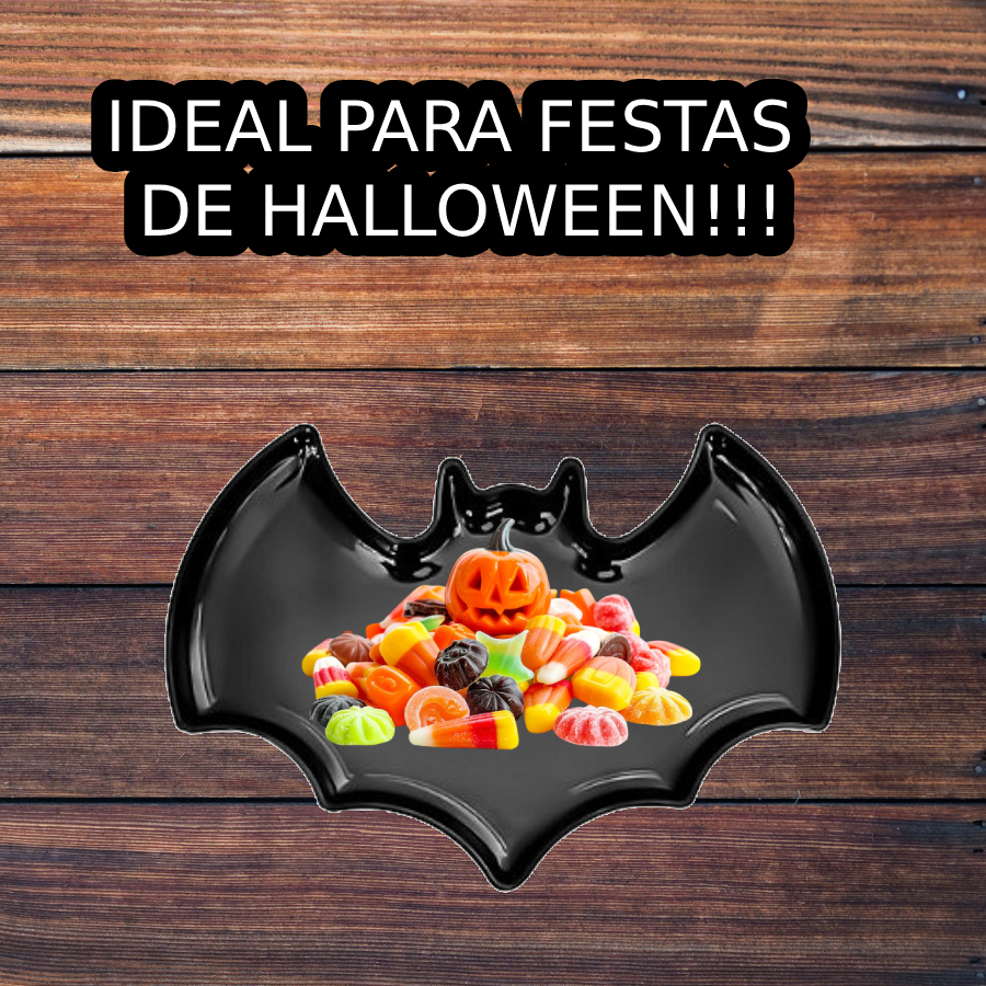 A Bandeja Morcego Preta é ideal para servir doces e petiscos em festas de Halloween e eventos temáticos. Produzida em material resistente, apresenta formato de morcego que garante charme e destaque à decoração da mesa.
