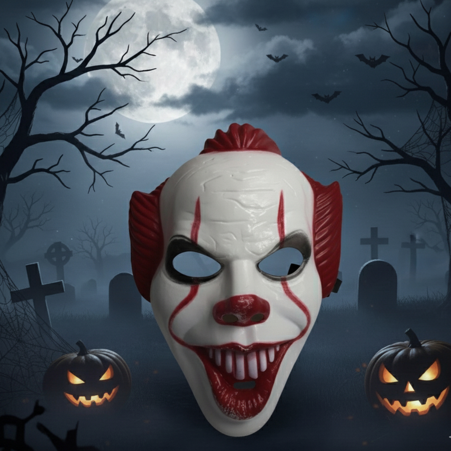 A Máscara It: A Coisa YDH-8259 é perfeita para compor fantasias de Halloween, festas temáticas e eventos de terror. Inspirada no icônico palhaço do filme It: A Coisa, possui acabamento detalhado e expressão realista, garantindo um visual assustador e marcante.